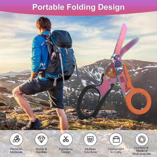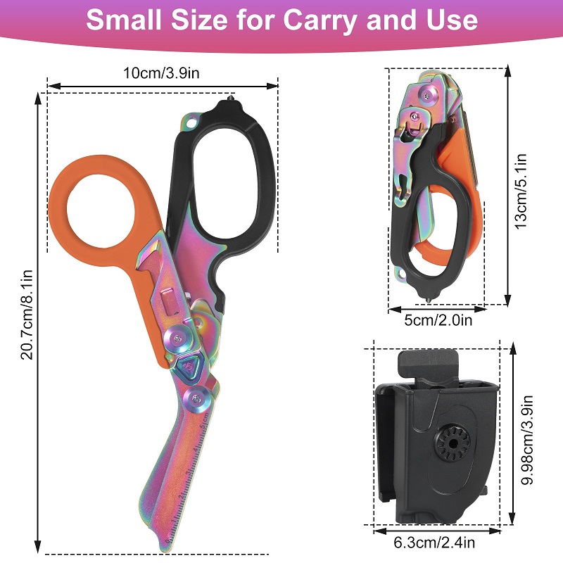 10*20.7 सेमी/8.1*3.9 इंच6-इन-1 मल्टी-फंक्शन रेस्क्यू टूल: मल्टीफंक्शनल मेडिकल कैंची